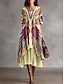 Damen Midi Kleid Boho A-Linie Kleid Fit und Flare Kleid Urlaub Lässig Täglich Reguläre Passform Grafisch Geometrisch Langarm Rundhals Blau Pink Lila Orange Sommer Frühling