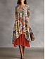 Damen Midi Kleid Boho Shift-Kleid Urlaub Party Lässig Täglich Urlaub Regulär Fit Grafik Geometrisch Paisley Langarm Rundhalsausschnitt Schwarz Pink Rot Orange Sommer Frühling Herbst