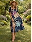Damen Midikleid Shiftkleid Urlaub Lässig Normale Passform Blumen Grafik Böhmische Halbarm Rundhalsausschnitt Blau Orange Grün Beige Sommer Frühling