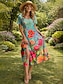 Damen Midikleid T-Shirt-Kleid A Linie Kleid Sommerkleid Urlaub Lässig Strand Normale Passform Blumen Grafik Kurzarm Rundhalsausschnitt Blau Rosa Grün Grau Sommer Frühling