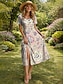 Damen Elegantes Party Abend Midi Kleid Rundhalsausschnitt Kurzarm Shift Kleid Sommer Kleid Lässig Täglich Reguläre Passform Blumengrafik Weiß Rosa Blau Grün Sommer Frühling Herbst