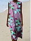 Damen Midikleid Shiftkleid Sommerkleid A Linie Kleid Urlaub Lässig Boho Strand Party Normale Passform Blumen Grafik Ärmellos Rundhalsausschnitt Gelb Rosa Grün Sommer Frühling