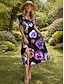 Damen Midikleid Shiftkleid Urlaub Lässig Normale Passform Blumen Grafik Böhmische Kurzarm Rundhalsausschnitt Blau Rosa Purpur Sommer Frühling