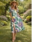 Damen Midikleid T-Shirt-Kleid A Linie Kleid Sommerkleid Urlaub Lässig Strand Normale Passform Blumen Grafik Kurzarm V Ausschnitt Blau Purpur Grün Beige Sommer Frühling