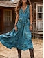 Damen Midikleid Sommerkleid A Linie Kleid Urlaub Lässig Boho Ferien Lässiger Schnitt Grafik Geometrisch Ärmellos V Ausschnitt Blau Grün Sommer Frühling