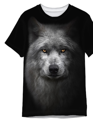 Herren Grafik T-Shirt Furchtloser Wolfkopf mit leuchtenden Augen Print Tribal Knochen Design Dunkelblaues Freizeit T-Shirt