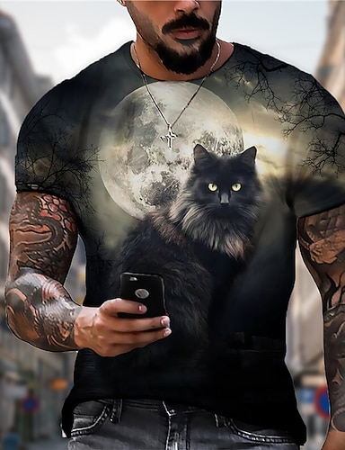 Männer Kurzarm Grafik T-Shirt mit Liebe Herz Kreuz Augen Gesicht Design Lässiges Lebensstil Oberteil