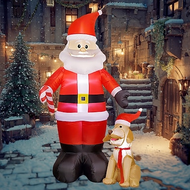 2,1 m Weihnachtsaufblasbarer Weihnachtsmann mit eingebauten LED-Lichtern Außendekoration Weihnachtsmann mit Hund Feiertagsweihnachtsaufblasbares Dekor für Garten Rasen Garten Außencampingparty