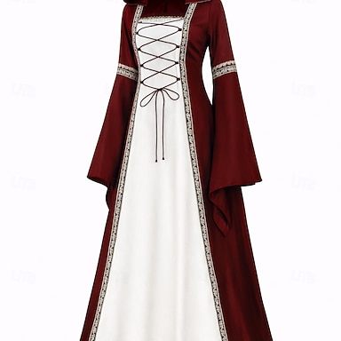 Retro Vintage Mittelalterlich Renaissance Kleid Nachthemd Überkleid Dame Wikinger Elfen Farbblock Kostüm Damen Keltisch Fantasie Karneval Maskerade Party Alltagstauglich Erwachsene Kleid