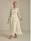 Women's Tea Length Cocktail Dress Dress Set Wedding Guest Dress A Line Dress Elegant Formal Wedding Party Regular Fit Floral Long Sleeve Crew Neck Gray Pink Summer Spring Fall