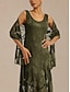 Women's Wedding Guest Dress Set Maxi Dress Chiffon Cardigan Embroidered Date Vacation Elegant V Neck Long Sleeve Pink Color Spring Summer Fall