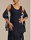 Women's Shirt Tank Top Twinset Lace Sequins Mesh Chiffon Elegant 3/4 Length Sleeve Crew Neck Wedding Guest Cocktail Attire Lace up Sequins Mesh Champagne Summer Spring Fall