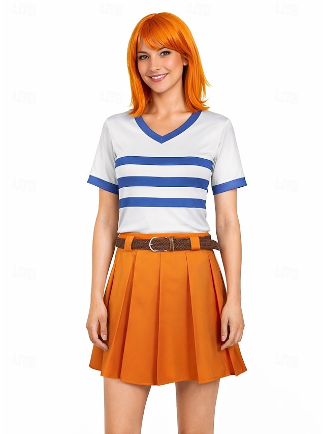 Gender:Women's,Material:Polyester,Style:Anime,Cosplay,Cosplay Works:Ocean Adventurer,Characters:Navigator,Straw Hat Pirate,Types:Cosplay Costume,Outfits,Holiday:Halloween,Carnival,Look After Me:Washable,Wet and Dry Cleaning,Machine wash,Occasion:Performance,Party,Age Group:Adults',What's in the box:Belt,Skirt,Top,