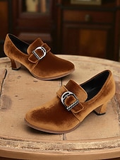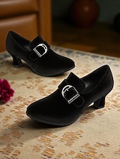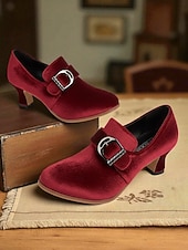 Women's Green Victorian Buckle Heeled Shoes – Retro 1900s Edwardian Style Mid-Heel Pumps with Pointed Toe, Elegant Vintage Footwear for Cosplay, Tea Parties, and Formal Occasions #11948417