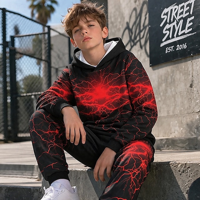 Boys' 3D Graphic Lightning Hoodie & Sweatpants Set Sports Suit Tracksuits Long Sleeve 3D Print Spring Fall Sports Fashion Casual Kids 4-12 Years Hooded Outdoor Street Regular Fit #10759186