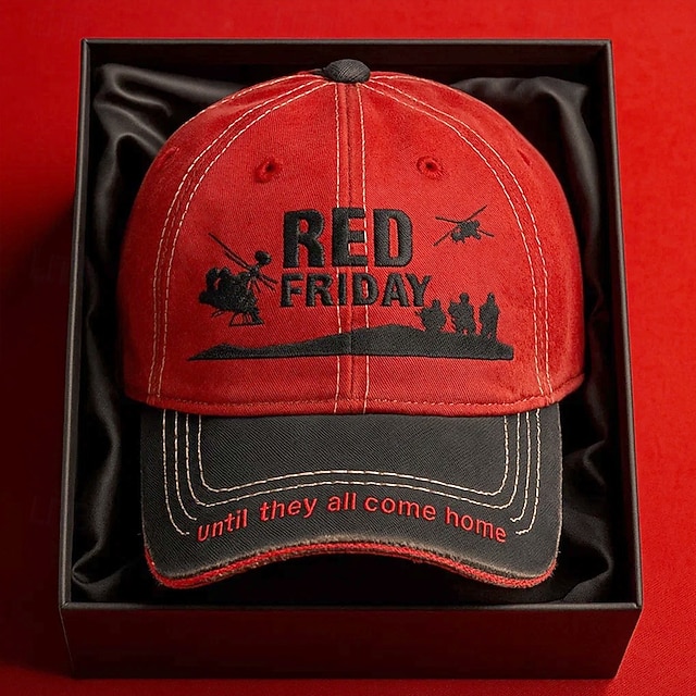 Red Friday Embroidered Cap Military Support Hat, "Remember Everyone Deployed" with Soldier & Helicopter Design, Adjustable Baseball Hat for Men & Women, Patriotic Red Cap#13445760