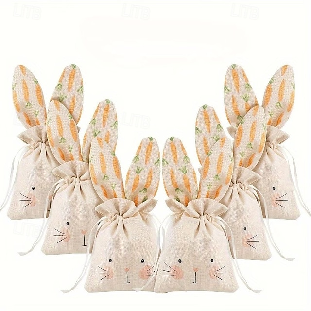 6pcs Bunny Drawstring Bags, 5.91x7.09inch, Cute Carrot Rabbit Easter Gift Pouches for Party Favors, Candy, Jewelry, Surprise Packaging, Goodie Bags for Wedding, Tailgating, Spring & Summer Events#10138564