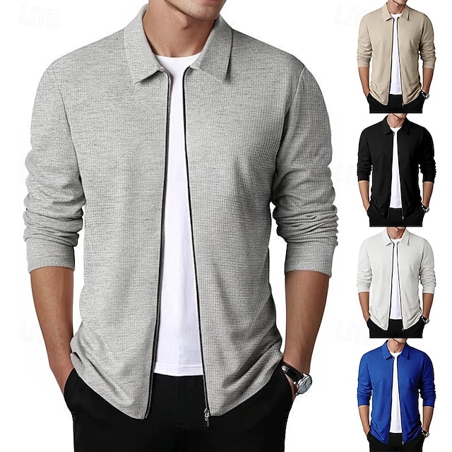 Men's Waffle Jacket Transition Jacket Daily Lightweight Pocket Spring & Fall Plain Classic Lapel Regular Black White Royal Blue Khaki Light Grey Jacket #10758474