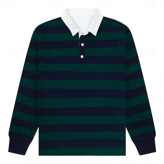Men's Striped Rugby Polo Long Sleeve Polo Shirts Collared Shirts Sportswear Casual School Outdoor Athleisure 3D Print Spring Fall Winter Black / Green #10759205