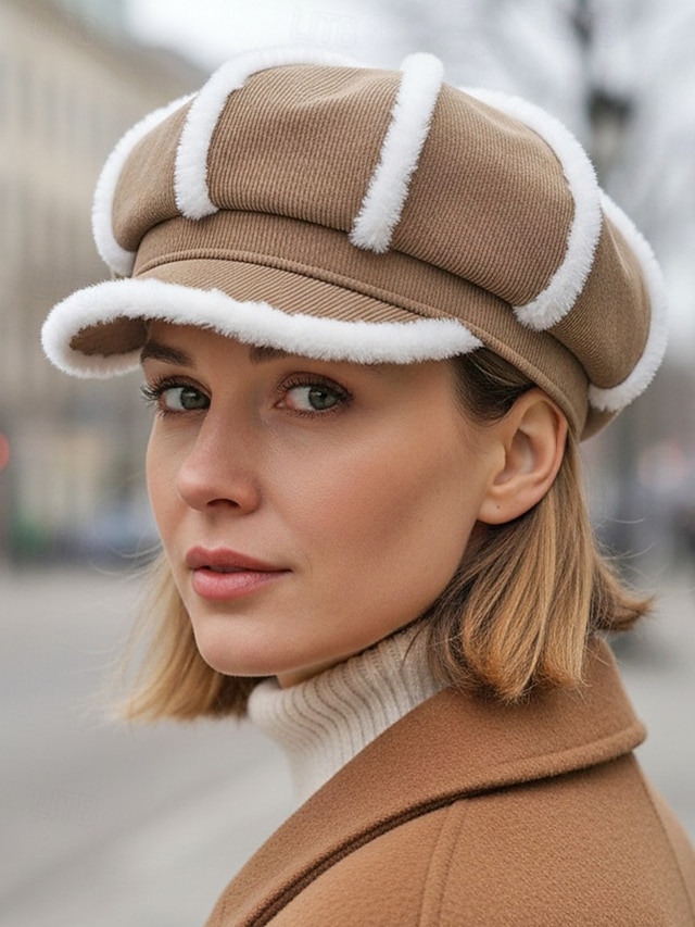 Season:Winter,Gender:Women's,Style:Casual,Elegant,Daily,Warm,Material:Corduroy,Polyester,Pattern:Solid Color,Type:Beret Hat,