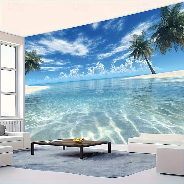 Beach Scene Tapestry Vibrant Palm Trees and Crystal-Clear Ocean Perfect Wall Decor for Living Room Bedroom or Coastal Home Decor#11548048