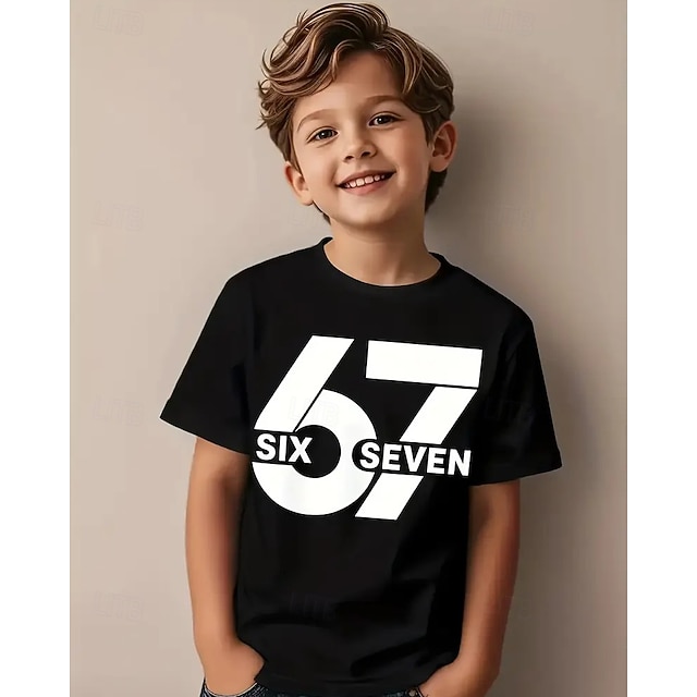 Christmas Unisex Boys' 3D Graphic Funny Slang 67 T shirt Tee Short Sleeve 3D Print Summer Spring Sports Fashion Streetwear Kids 4-12 Years Crew Neck Outdoor Casual Daily Regular Fit #12014749