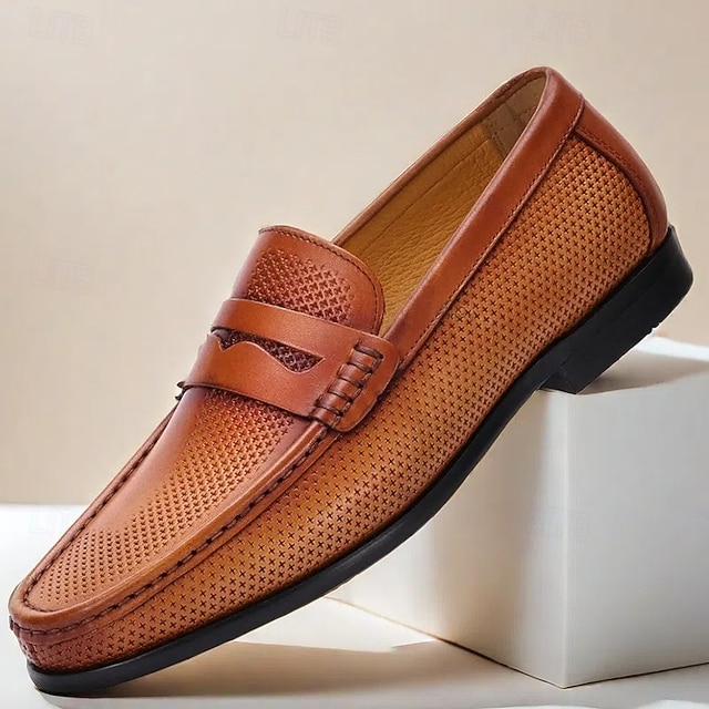Men's Premium Cowhide Embossed Leather Loafers - Stylish Textured Design for Casual and Formal Occasions#12825257