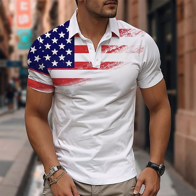 American Independence Day Men's American Flag Veterans Waffle Polo Shirts Golf Shirt Short Sleeve Polo Shirts Collared Shirts Casual Streetwear Vacation Wear Party Outfits Buttons 3D Print Summer #13179854