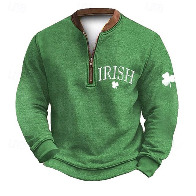 St. Patrick's Day Men's Shamrock St. Paddy's Day Sweatshirt Sweatshirt Fashion Streetwear Daily Classic Long Sleeve Quarter Zip Outdoor Going out Festival Black Green Printing Spring Fall Designer S#13314148