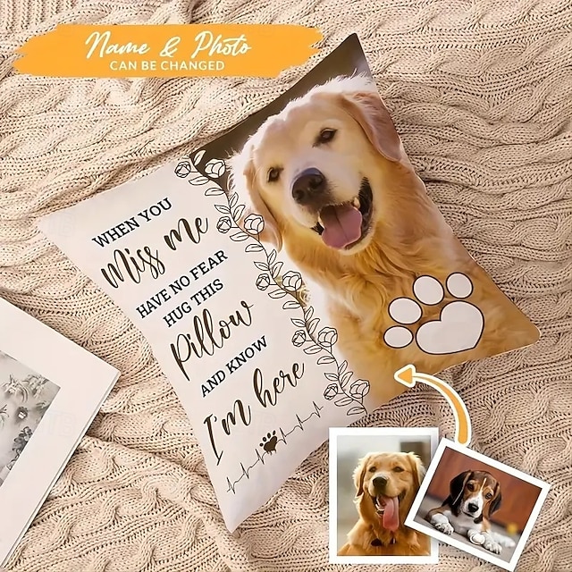 Custom Pet Photo Memorial Pillow Cover Cushion Cover Throw Pillow Sympathy Gift Personalized Memorial Gifts When You Miss Me Hug#13785902