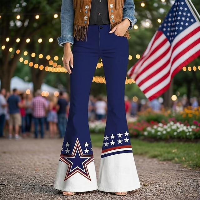 250th Anniversary USA Retro Vintage 1970s Pants Bell Bottom Pants Hippie Disco High Waist Fancy Dress Women's Masquerade 4th of July Party Independence Day Adults' Pants#14332760