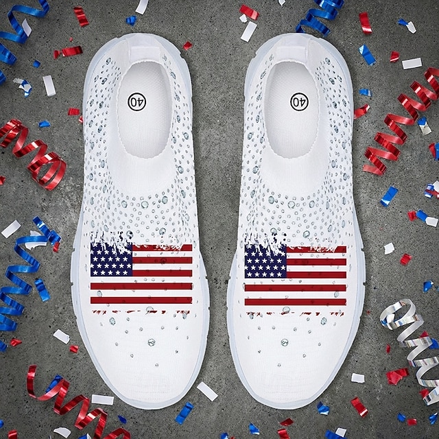 Women's USA Flag Graphic Slip-On Sneakers - Cushioned Breathable Athletic Shoes, Patriotic Sport Casual Style for Parades, USA, Travel & Daily Wear #14469264
