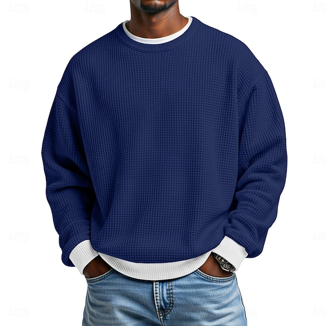 Men's Waffle T-shirt Pullover Sweatshirt Tee Top Long Sleeve Shirt Long Sleeve Crew Neck Round Winter Spring & Fall Plain Fashion Designer Basic Fashion Fake two piece Vacation Street Casual Light #14900858