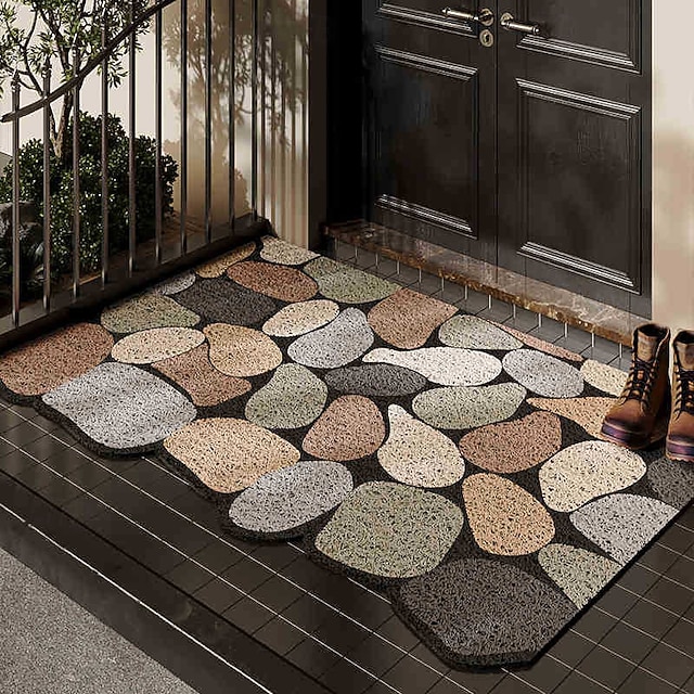 PVC loofah bath mat Pebble Stone Doormat Non Slip Entryway Rug Outdoor Indoor Front Door Mat Washable Low Profile Welcome Mat for Patio Porch Mudroom Farmhouse Decor#15488545