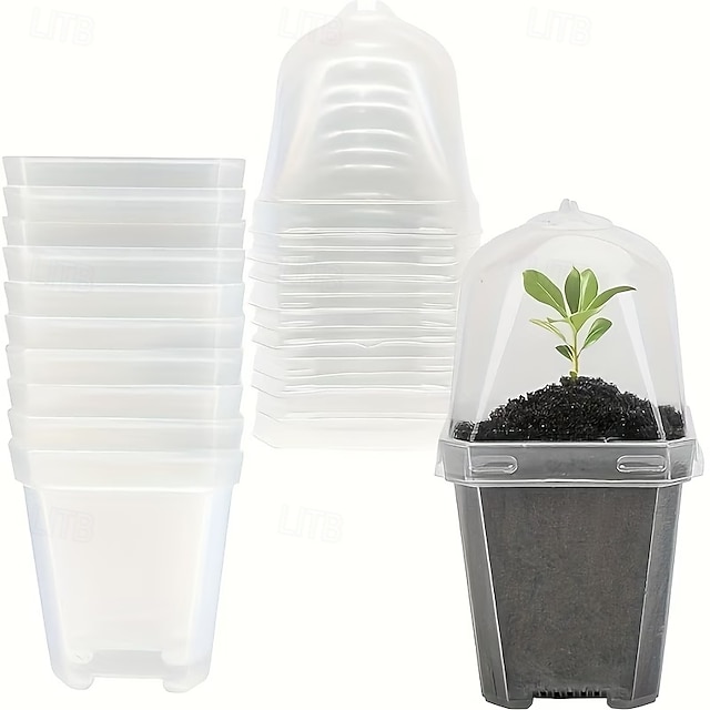 10pcs of Transparent Plant Seedling Pots with Humidity Domes, Square Plastic Containers with Lids And Bases, Breathable And Heat-Insulating, Suitable for Seedlings, Vegetables, Succulents#16038965