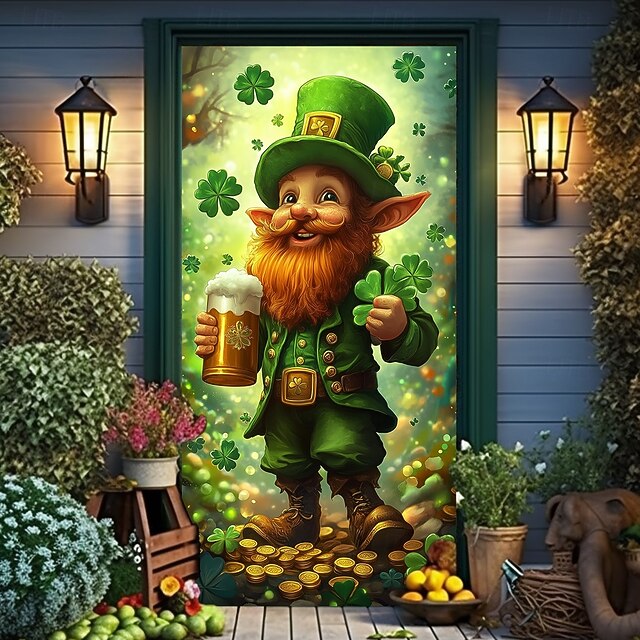 Saint Patrick's Day Door Decorations Door Covers Shamrocks Gnome Door Tapestry Door Curtain Decoration Backdrop Indoor/Outdoor Door Banner for Front Door Farmhouse#16643119