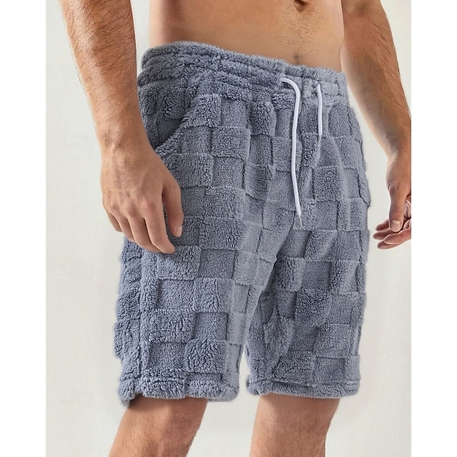 Men's Shorts Casual Shorts Pocket Elastic Waist Fleece Plain Warm Breathable Knee Length Outdoor Vacation Daily Wear Vacation Fashion Black Gray Micro-elastic #18852617