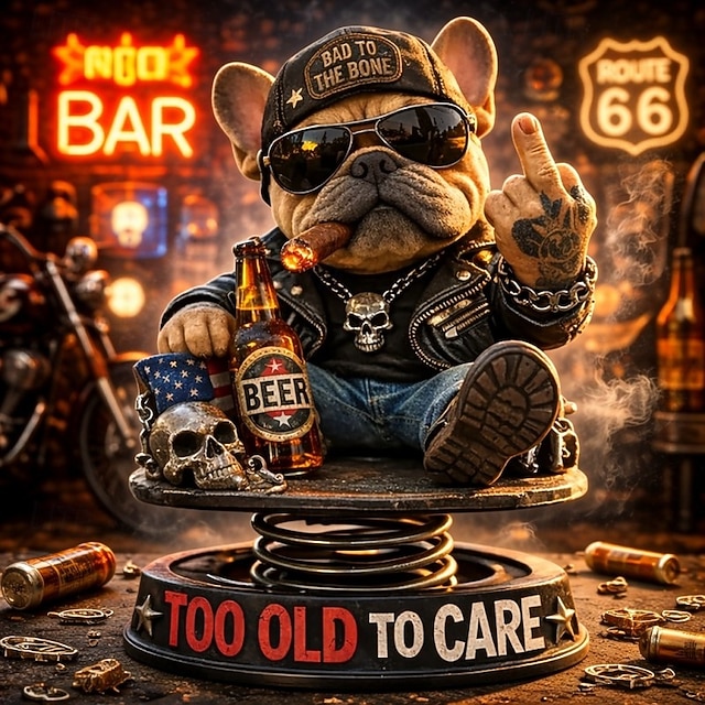 Too Old To Care Dashboard Bobblehead, Handmade Resin French Bulldog Biker Figurine Funny Gift for Dad to Old Man Office Car Decor Gift, Handmade Collectible#19530311