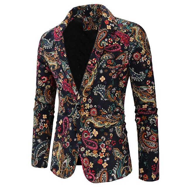 Men's Blazer Cocktail Attire Windproof Warm Breathable Street Going out Single Breasted One-button Notch lapel collar Casual Jacket Print Rainbow / Spring / Fall #8854640