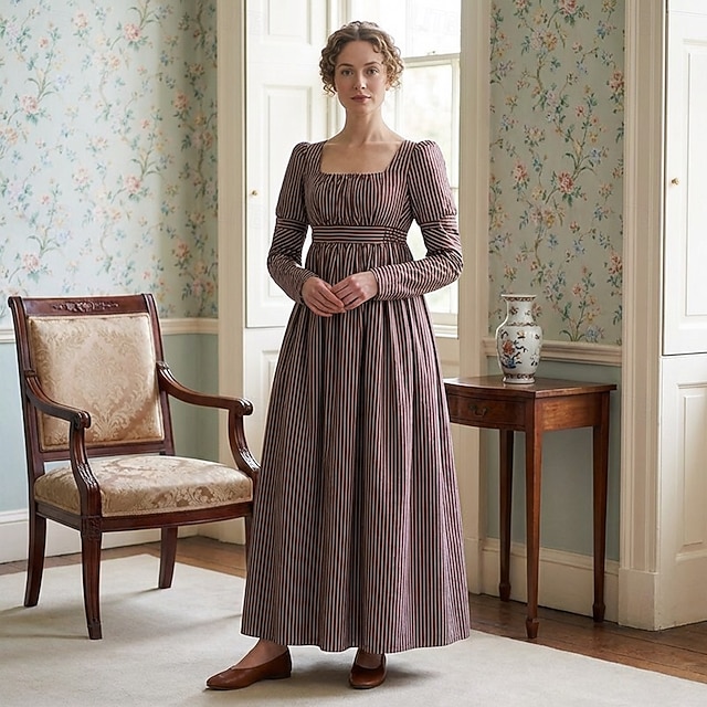 1791's Lady Regency Dress Jane Austen Vintage Dress High Waistline Tea Gown Retro Vintage Medieval Renaissance Women's Halloween Carnival Masquerade#9572869