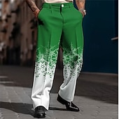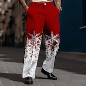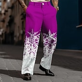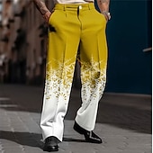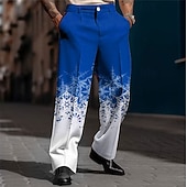 Christmas Men's Christmas Scene Printed Pants Snowflake Business Casual 3D Print Trousers Outdoor Street Wear to work Ugly Polyester Wine Yellow Blue S M L High Elasticity Pants #9716396