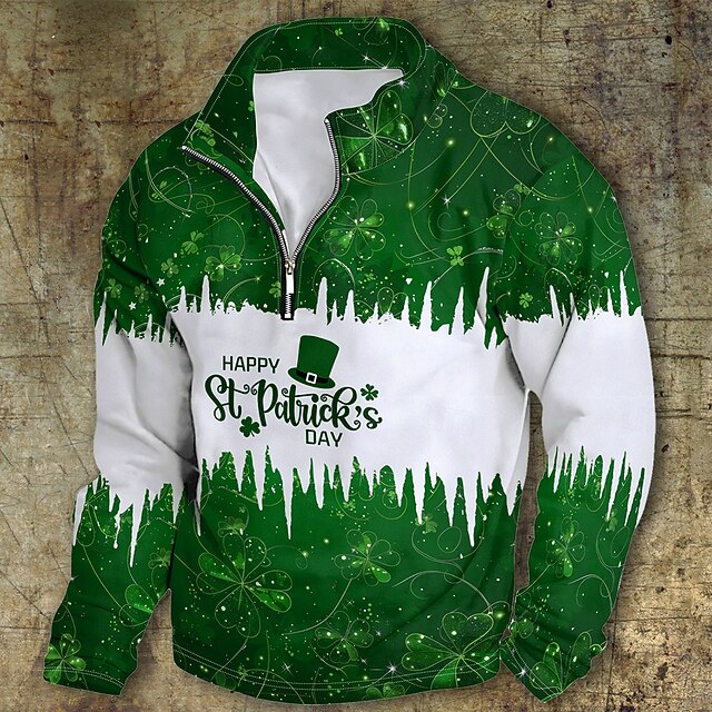 St. Patrick's Day Men's Graphic Saint Patrick Day Hoodies Quarter Zip Sweatshirt Hooded Sweatshirt Stand Collar Daily 3D Print Vacation Going out Streetwear Green Print Spring & Fall Designer#9830691