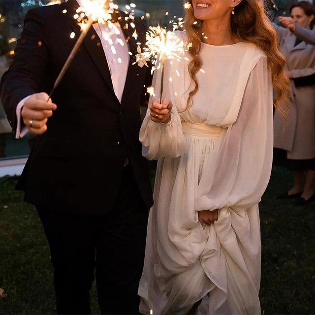 Style:Bishop sleeves,1940s / 1950s,Open Back,Vintage,Silhouette:A-Line,Hemline / Train:Chapel Train,Neckline:Scoop Neck,Fabric:Chiffon,Closure:Zipper UP,Sleeve Length:Long Sleeve,Waistline:Natural,Fully Lined:Yes,Embellishment:Solid Color,Wedding Events:Beach,Tips:Professional dry cleaner only,Colors may vary slightly due to different monitor settings,Jacket & Wrap:No,