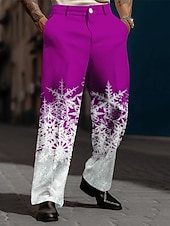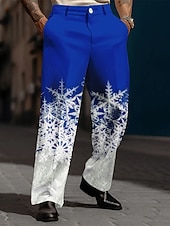 Christmas Men's Christmas Scene Printed Pants Snowflake Business Casual 3D Print Trousers Outdoor Street Wear to work Polyester Black and White Wine Yellow S M L High Elasticity Pants #9705898