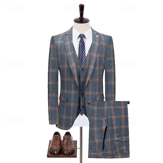 Men's Business Suits Casual Dusty Blue Spring Suit Notch Lapel Daily Formal Plaid Slim Fit 3 Piece Single Breasted Two-buttons#18289089