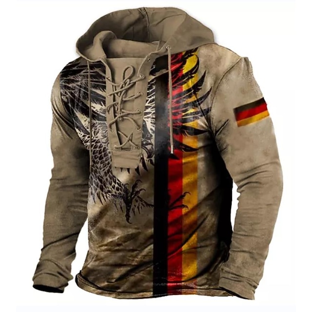 Men's Ethnic Hoodie Hoodies Sweatshirt Designer Casual Boho Big and Tall Long Sleeve Hooded Daily Sports & Outdoor Sports Holiday Blue Yellow Red Brown Green Lace up Print Spring & Fall Designer S M #9319912