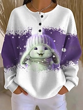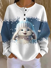 Women's Sweatshirt Long Sleeve Winter Bunny with Hat Graphic Blue Snowflakes Crew Neck Casual Comfortable Holiday Festive Homewear Regular Fit #19730649