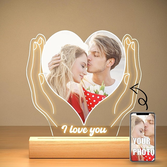 Personalized Light Up Photo Frame Wedding Couples Custom Heart Shaped USB Night Light for Wedding Valentines Anniversary Gift for Wife Husband or Lover#12765762