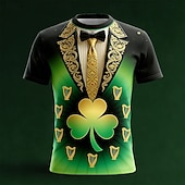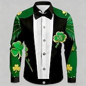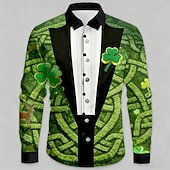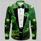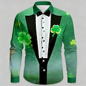 St. Patrick's Day Men's Shamrock Faux Collar and Suit Design Faux Tie Print Shirt Button Up Shirt Long Sleeve Vintage Retro Party Holiday Spring Fall Turndown 3D Print Collared Shirts Green #17362801