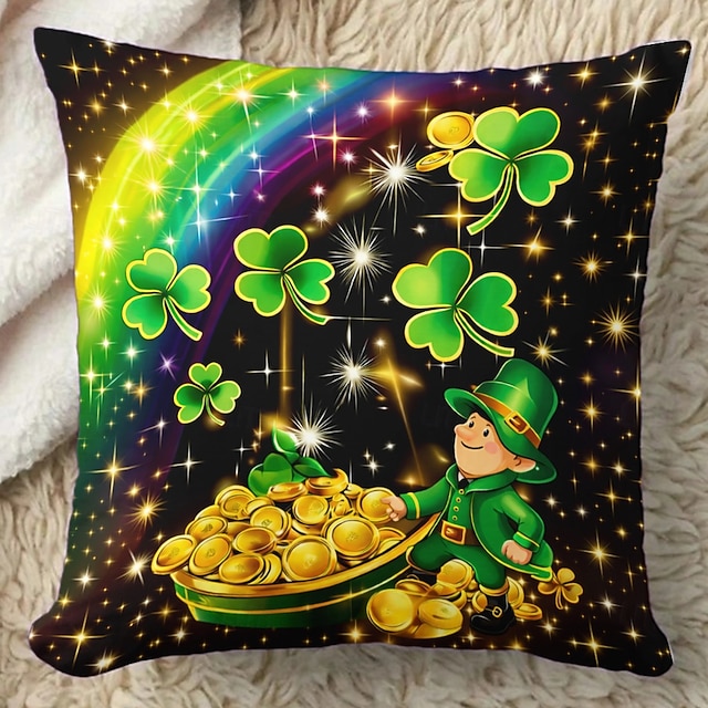 St. Patrick's Day Shamrock Casual Throw Pillow Cover 18x18 Inch, Green Decorative Cushion Case for Sofa Home Decor#10446655